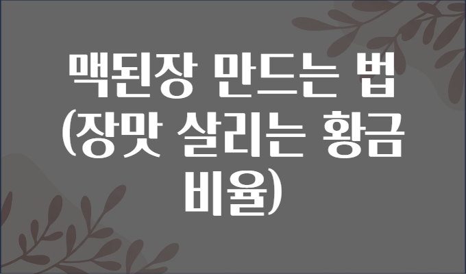🔢 맥된장 만드는 황금 비율과 단계별 레시피 🍴