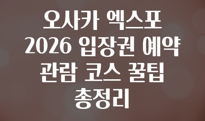 오사카 엑스포 2026, 입장권 예약부터 관람 코스까지! 꿀팁 총정리 🎉🌏